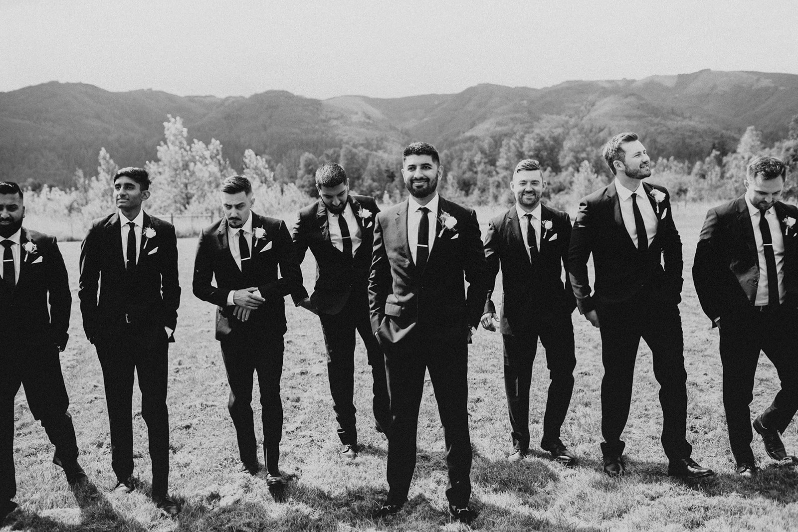 E&S wanted a big party for their wedding and they decided the best place for that was on E’s parents property. There was already a barn, gazebo and garden onsite, so with the addition of a tent, bathrooms and dance floor they had a beautiful space to hold their celebration. August weather in the Pacific Northwest is usually a sure thing. However on this day, it sprinkled a bit in the morning, giving us a scare. We lucked out and the mixed weather actually provided some drama with rays of sun through the clouds adding mood lighting.